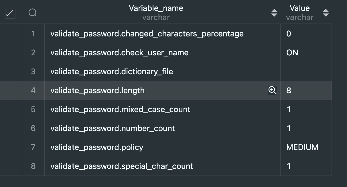 SET GLOBAL validate_password.length=4;